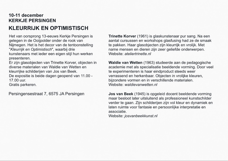 Volgende maand een expositie in het Kerkje van Persingen.